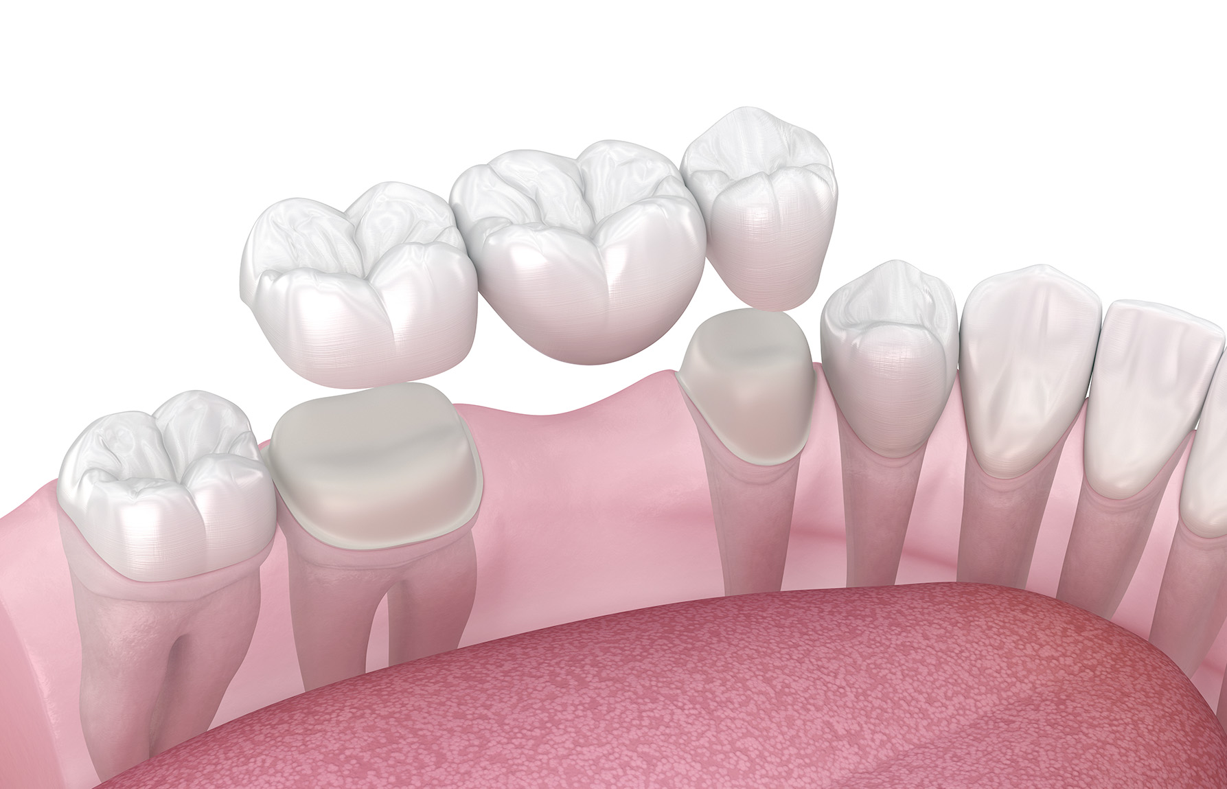 Wanneer u één of meerdere tanden mist, is een tandheelkundige brug een mooie oplossing voor u. Een brug bestaat uit een vaste combinatie van drie of meer elementen aan elkaar. Een brug omspant het deel waar uw tanden ontbreken en wordt aan weerszijden hiervan bevestigd aan bestaande tanden. Omdat deze aangrenzende tanden als steunpilaren voor de brug dienen, is een aanpassing nodig in de vorm van twee kronen. Net als bij kronen, wordt ook een brug in de juiste kleur op maat gemaakt en is het een vaste vervanging. Daardoor vormt het één geheel met de rest van uw gebit.